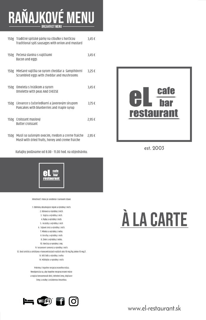 V ponuke eL cafe/bar restaurant nájdete dve komplet vybavené dvojlôžkové