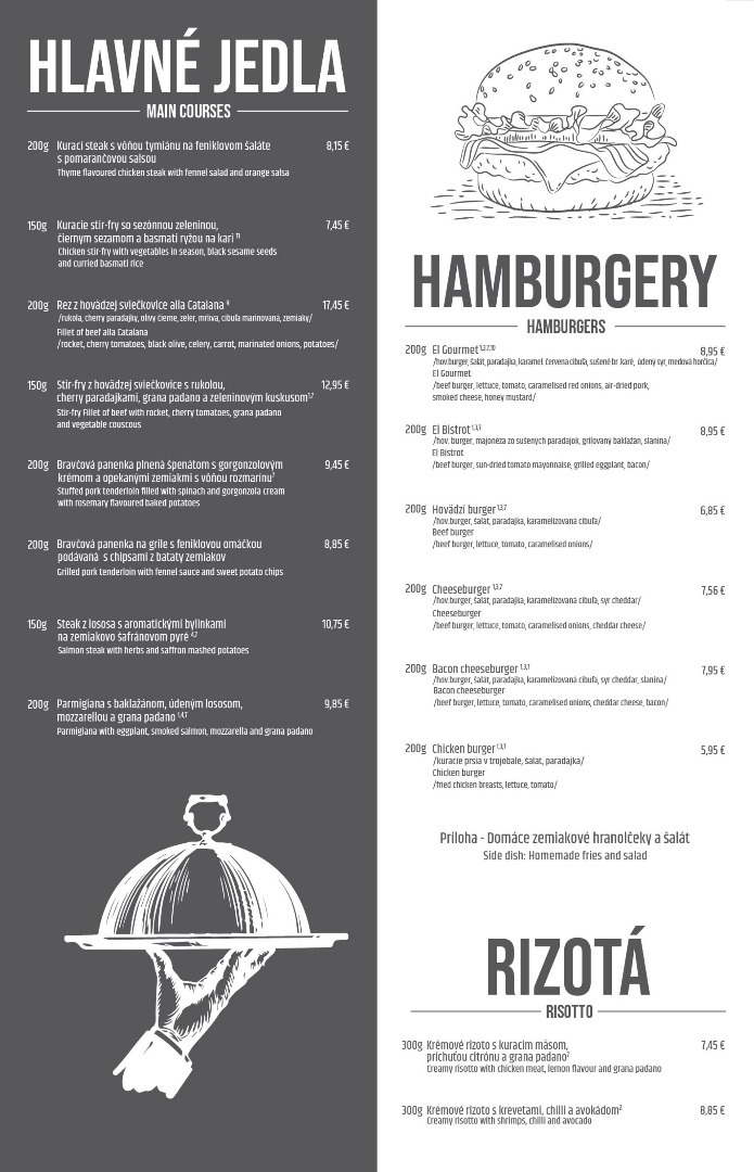 Jedálny lístok:
